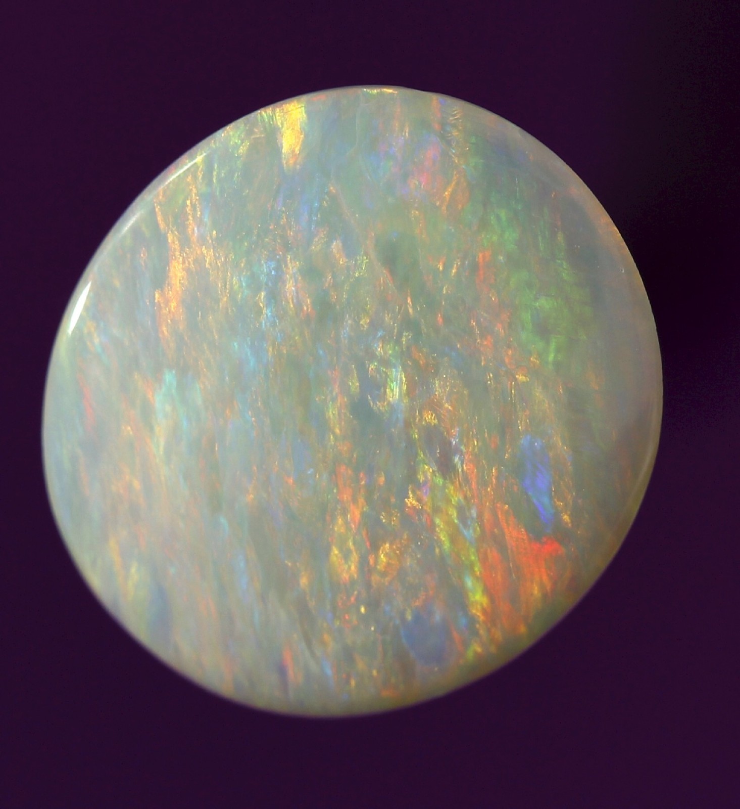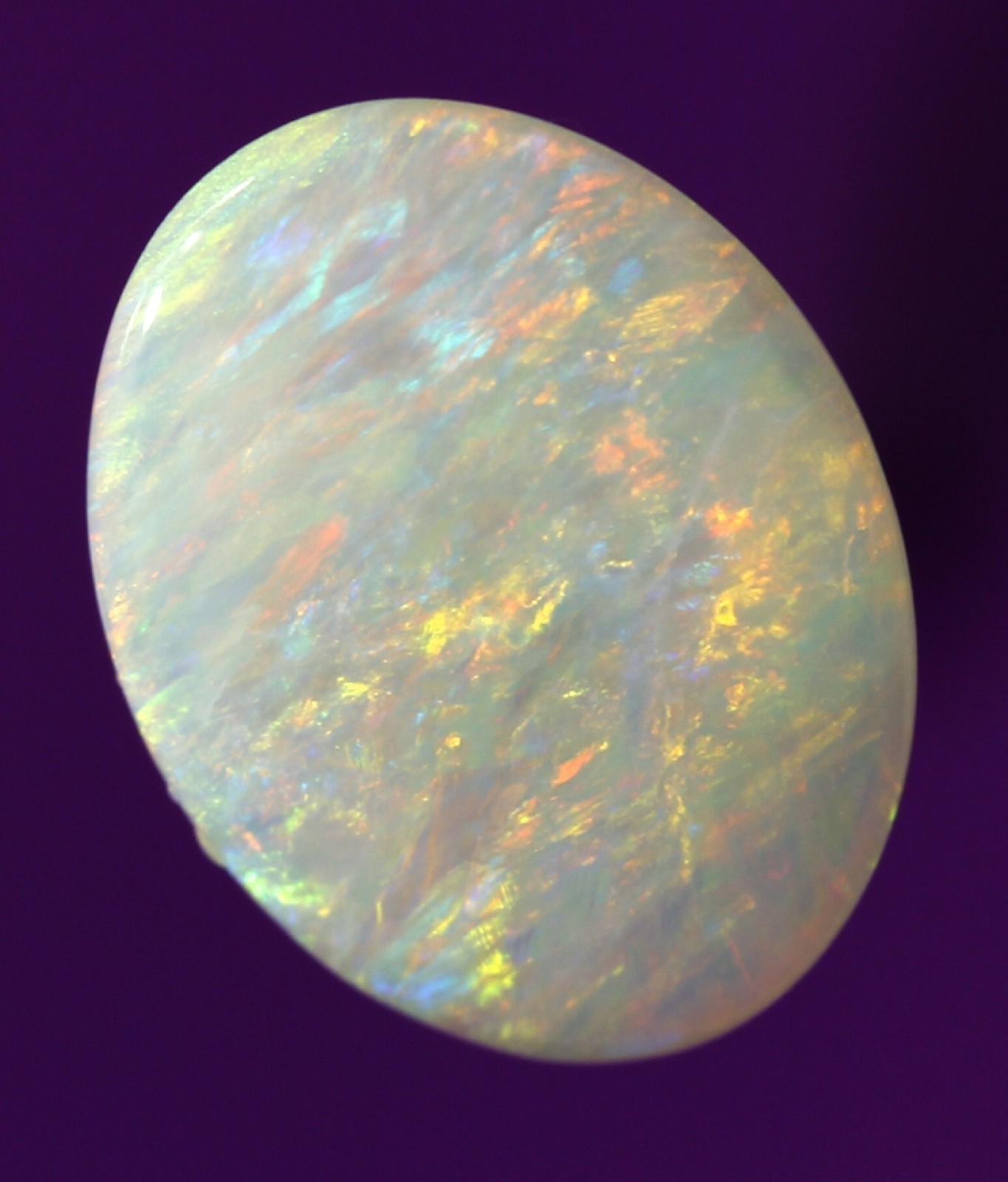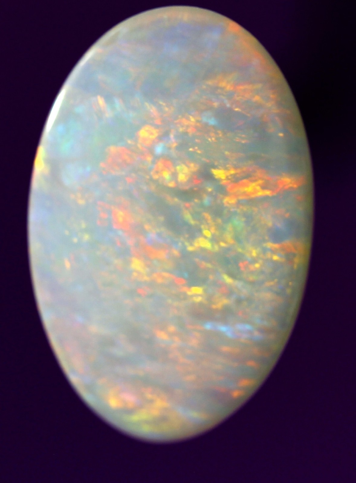 Absolutely loaded with gorgeous flashy play of red, orange, turquoise, green across the entire face of the opal. A constant stunning flashy play.