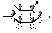 O significado do círculo no centro desse anel aromático pode ser melhor entendido perguntando: O que há de errado com as estruturas de Kekulé para o benzeno? Começamos construindo um esqueleto de ligação sigma para o anel benzeno no qual cada um dos átomos de carbono é sp2 hibridizado. Isto deixa-nos com um electrão em um 2p orbitais em cada um dos seis átomos de carbono.