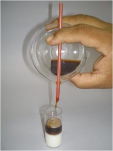 - Com auxílio do canudo coloque em cima da rolha pequenas quantidades de cáfe.