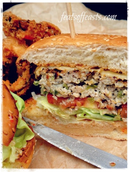 I thought I’d try to squeeze in one more burger recipe before the cork goes pop. 🙂 This time, this burger is all pork. Pork burgers are a big thing here because they’re so rare and also not every outlet can do a good pork burger. What constitutes a good pork burger? If you ask me, the pork has to be fresh and off good quality of course, it needs fat to be moist and juicy and it shouldn’t be overcooked or overstuffed with too much mix else you’ll lose the natural taste of the pork entirely.