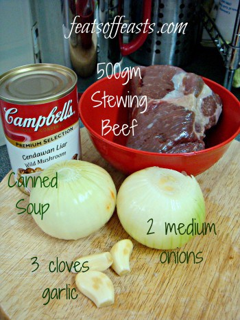 - 400-500 gms stewing beef, cut into cubes