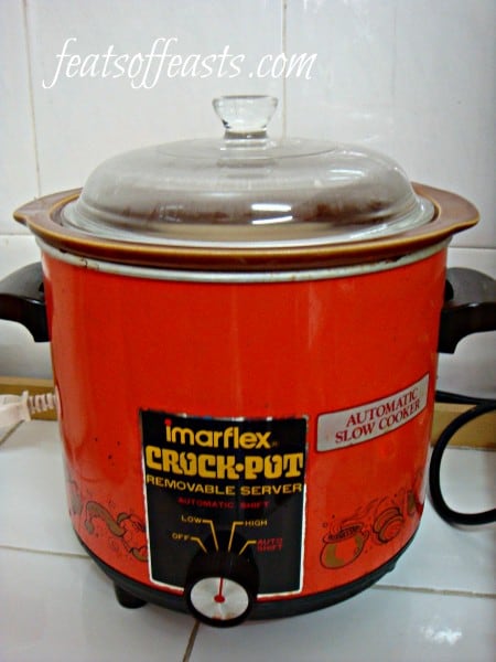 I was wondering whether I should be using the name Crockpot or slow-cooker (they mean the same) because crockpot has become a registered product name but since I sourced for this recipe, I’ll just stick to its original name. I own a very old, vintage but very reliable and still functioning crockpot. Even the colours itself look like it’s straight out from a recipe book in the 70’s. But I still love it and I do love all things vintage when it comes to kitchen stuffs.