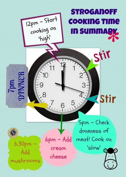 But ever since being a SAHM, I’ve reduced the crockpot usage. No reason really, just thought that since I’m at home, I could keep an eye on the whatever’s on the stove. So when this recipe came up, I was excited to remove my trustee crockpot from its cobweb-laden corner and put it to work again. I also wanted to see how good this stroganoff was, cooked from a crockpot. I made stroganoff before with a normal frying pan but wasn’t too happy with the outcome, I think there’s a flaw in the recipe too (or just a flaw in my cooking technique). Because it was supposedly ready in 20 mins, how is that enough time for the beef to get tender?