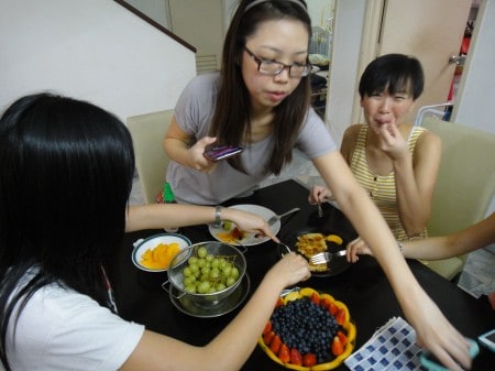 2 weeks ago, some of my girlfriends from my women’s group came over for a cooking session. We decided to make pancakes. I had this recipe that I wanted to try out for some time now but I needed people to come and eat. This was really the perfect timing. The girls bought all sorts of fruits as toppings or fillings. Of course they could not help taking out their smartphones and instagrammed everything.