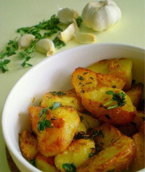 MEGA GARLIC AND THYME ROAST POTATOES RECIPE