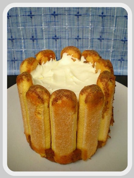 2. Place your sponge fingers around the sides to form a cylindral fort, as shown in the first picture.
