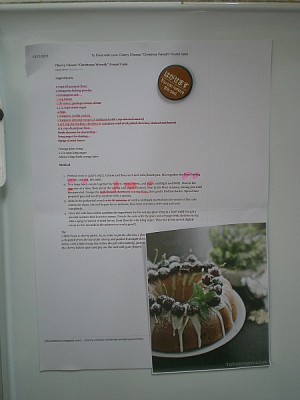 I wanted to bake the wreath cake so badly, not because the recipe was damn fantastic but I fell in love with the picture of the cake before I even knew what was in it. The recipe was from To Food With Love. This is the first time I’ve ever been so taken by a photo, I want to make it no matter what. It is a lovely cake. So I tried again the second time with the recipe and photo stuck to where I can see it.