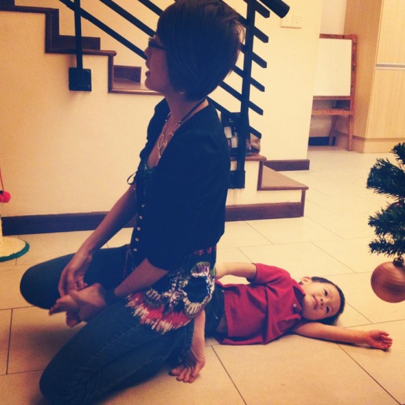 The night really stretched on because we had so much fun with the carols, gift exchange, games and laughing at other people. Those with small kids can attest to the feeling that you wish you could stay longer but by the certain hour, crankiness and boredom kicks in for all the little ones. My little man was no exception, he was doing his ‘squid manoeuvres’ on the floor and screeching at the top of his lungs to get attention. By the time this photo was taken, we had already been through a 5 minute friendly tussle.