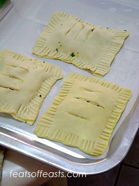 So for the first recipe, I always love some sort of stuffing encased in puff pastry and when you bite down into it you get that soft, crunchy and flaky texture and then coupled with the right stuffing can make your meals all the more interesting. These are spinach pockets with feta cheese.