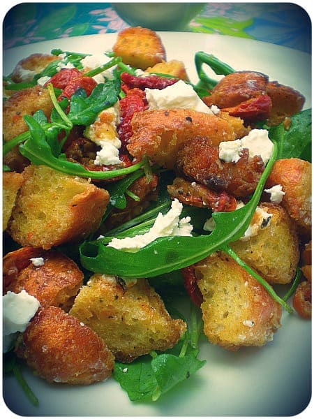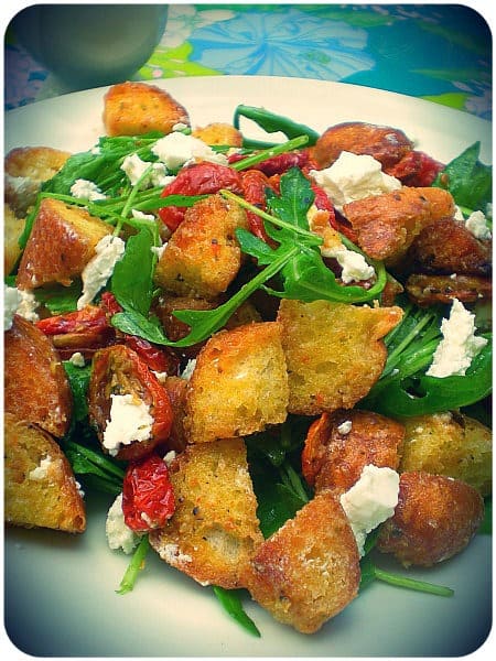 What is a bread salad? Or rather, isn’t bread salad just salad with giant croutons? I have an inkling that if you say that to a true-blue Italian’s face, he might vaporise you with his stare. ‘Croutons are croutons! Panzanella is panzanella….capish?!’ It doesn’t matter what the name really means, you have got to try this salad and it’s really such a delicious way to use up stale bread.