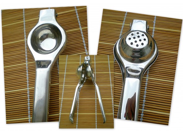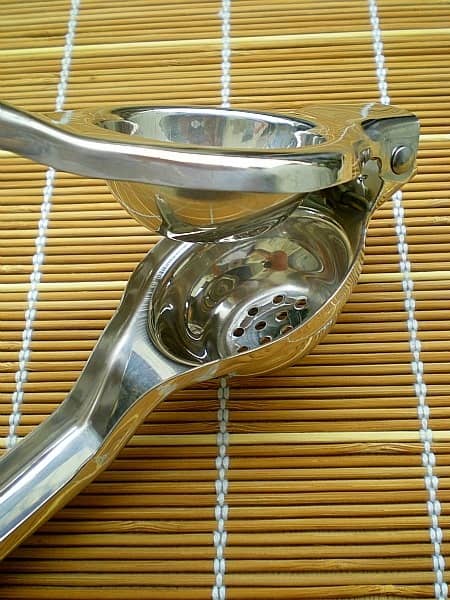 This is really good when you have to squeeze loads and loads of limes. Even your fingers get sore eventually. The principal of this gadget is simple, put the lime in the space and press down the clamp to get the juice out without any falling pips. This also works for lemons. Cleaning is a breeze and storage is like next to none.