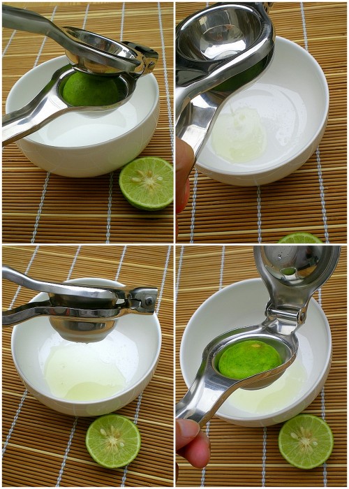 I did try using my cone juice extractor but the size wasn’t meant for limes. I also tried using the tongs method by wedging the lime in between the tongs and clamping the juice out, but I still need my hands to catch the pips. So the next best tool is either this, or a hand-held juice reamer. I opted for this because it keeps the pips snugly in.