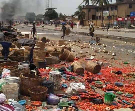 A violent ethnic clash at Oke-Odo Market along the Lagos-Abeokuta Expressway Sunday led to wanton destruction of good and property. No life was however lost in the incident.