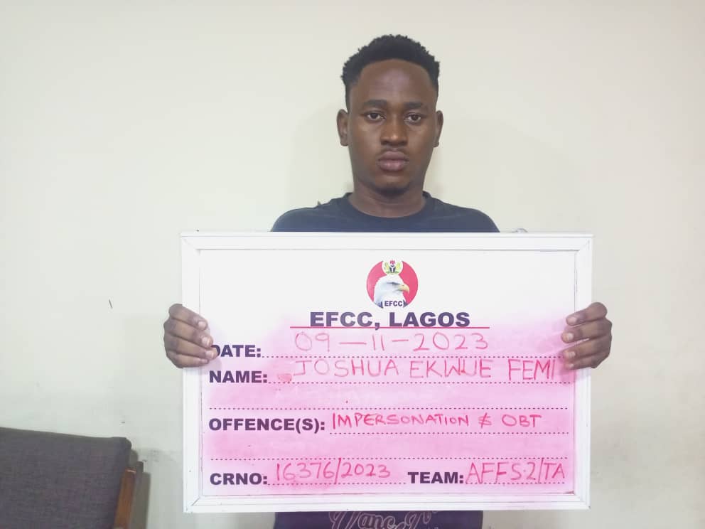 The Economic and Financial Crimes Commission, EFCC, on November 9, 2023, secured the conviction and sentencing of Ekwue Joshua Femi to one year imprisonment for defrauding an American, Sheedy Morgan the sum of $20,000 (Twenty Thousand United States Dollars).