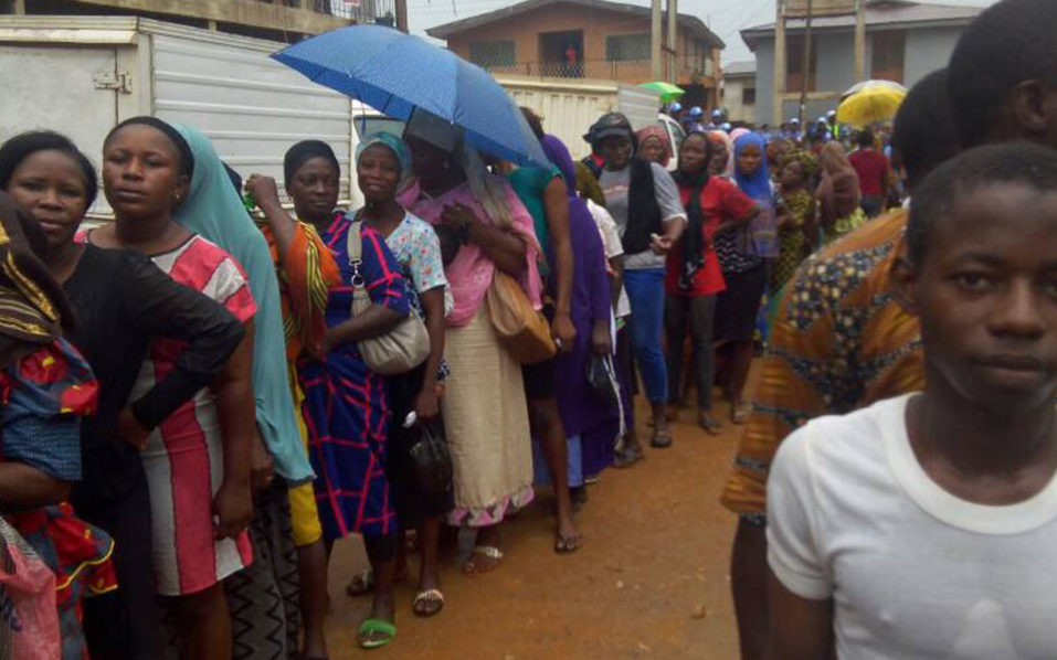 There was mild drama at Polling Unit 17, Ward 5, Adewale Street, Alekuwodo, Osogbo, when voters that came out to participate in the Osun governorship re-run election refused to quit the queue in spite of a heavy downpour.