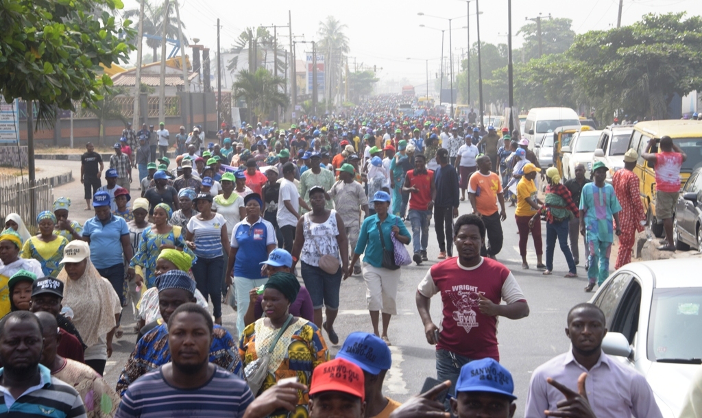 “Trekking from Alausa to this place under this scorching sun is a tough task no doubt and it is a demonstration of your commitment and loyalty to this party; it is a demonstration of the commitment and loyalty of Governor Ambode to APC and I want to commend you all for this,” Balogun said.