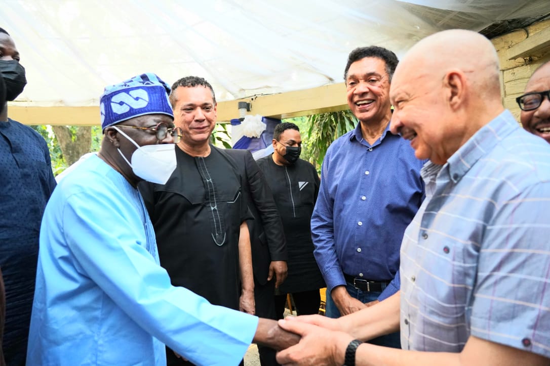 Photo caption: All Progressives Congress National Leader, Asiwaju Bola Ahmed Tinubu, Mr. Guy Murray-Bruce, Senator Ben Murray-Bruce and Mr. Millie Murray-Bruce, during a condolence visit to the Murray-Bruce Family at Thorburn Avenue, Yaba, Lagos on the death their mother and matriarch of the family, Madam Margaret Murray-Bruce…on Monday.