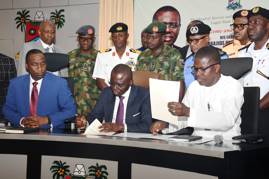 Lagos State Governor, Mr. Babajide Sanwo-Olu today signed his first Executive Order to address the issue of traffic control and management, fixing of potholes on the roads, sanitation as well as cleaning of drainages in the State.