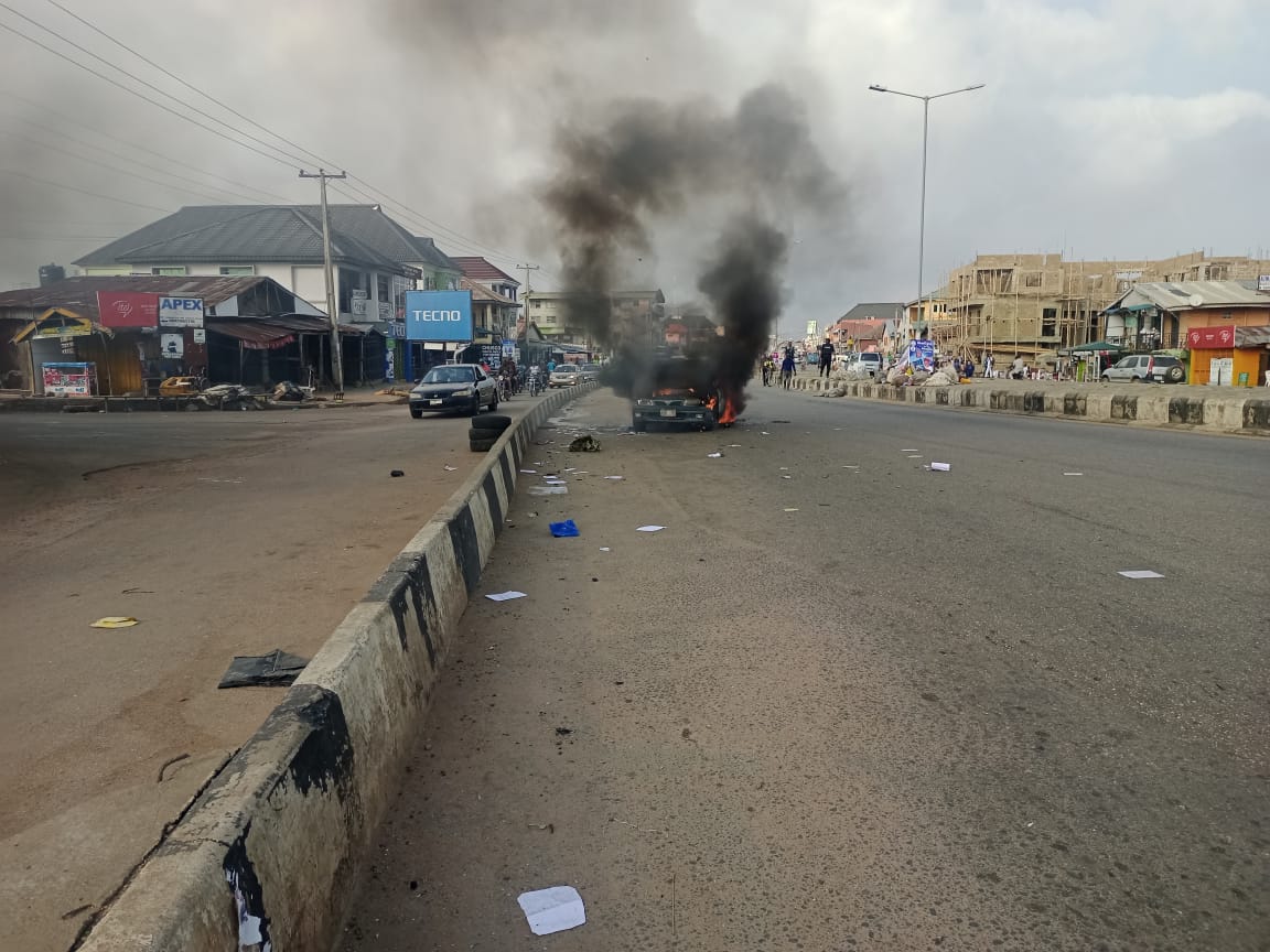 Factional Transport Unions Battle To Occupy Osun Parks, Vehicle Razed