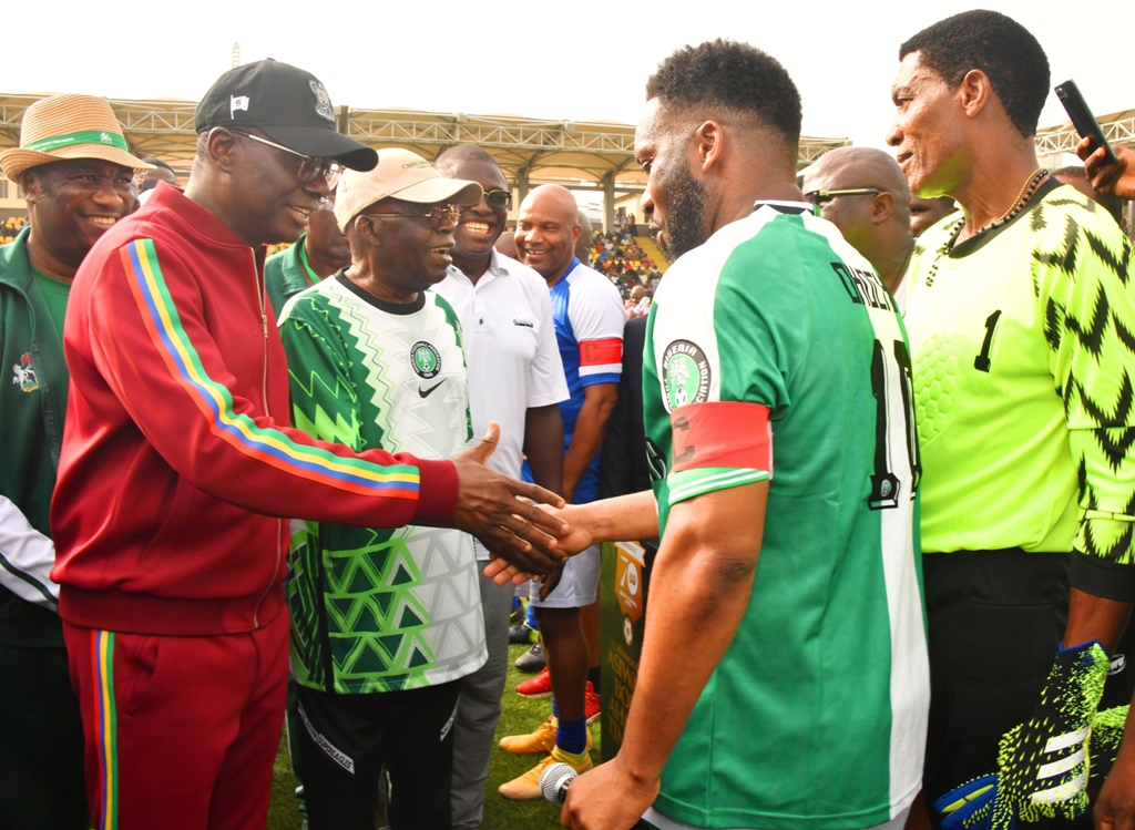Lagos State Governor, Mr. Babajide Sanwo-Olu; his deputy, Dr. Obafemi Hamzat; Minister of Youth and Sports, Mr. Sunday Dare; Nigerian Ambassador to Spain, Demola Seriki; Speaker of the Lagos State House of Assembly, Rt. Hon. Mudashiru Obasa, public office holders at federal and state levels on Sunday converge on Lagos to honour the National Leader of the All Progressives Congress (APC), Asiwaju Bola Tinubu, with a novelty match in celebration of his 70th birthday.